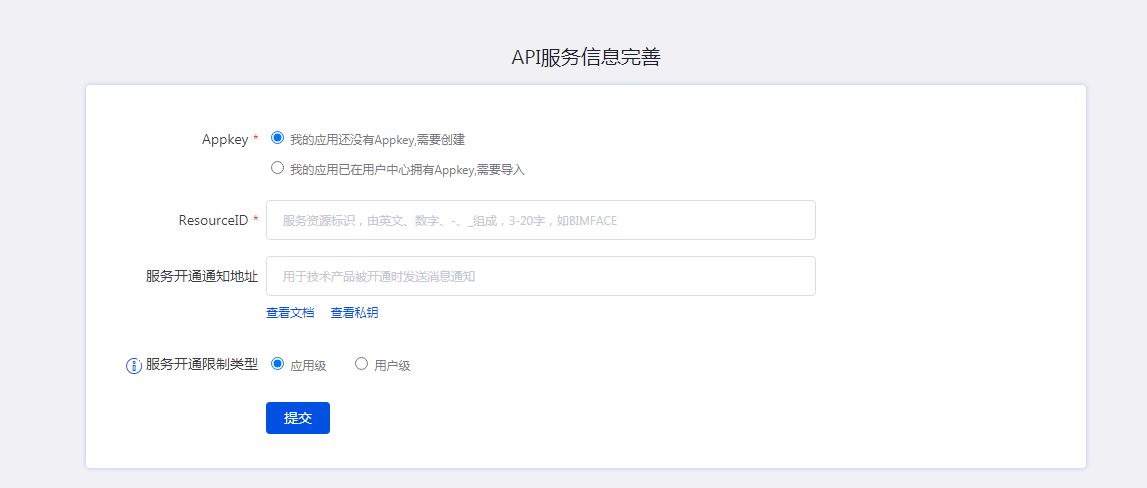 1)如果已经有从用户中心获取的appkey,请输入appkey;