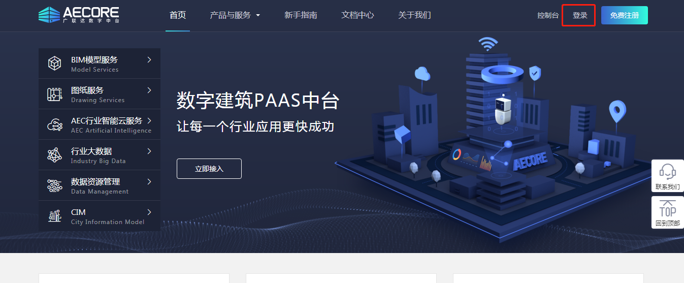 登录AECORE,导航栏选择并进入服务管理,填写服务基本信息。