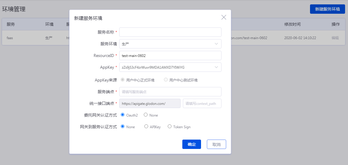 AppKey来源: 选择手动填写appkey对应的用户中心的环境,注意:appkey与环境对应错误会导致验权失败。AECORE默认生成的appkey对应用户中心环境唯一,不可修改;