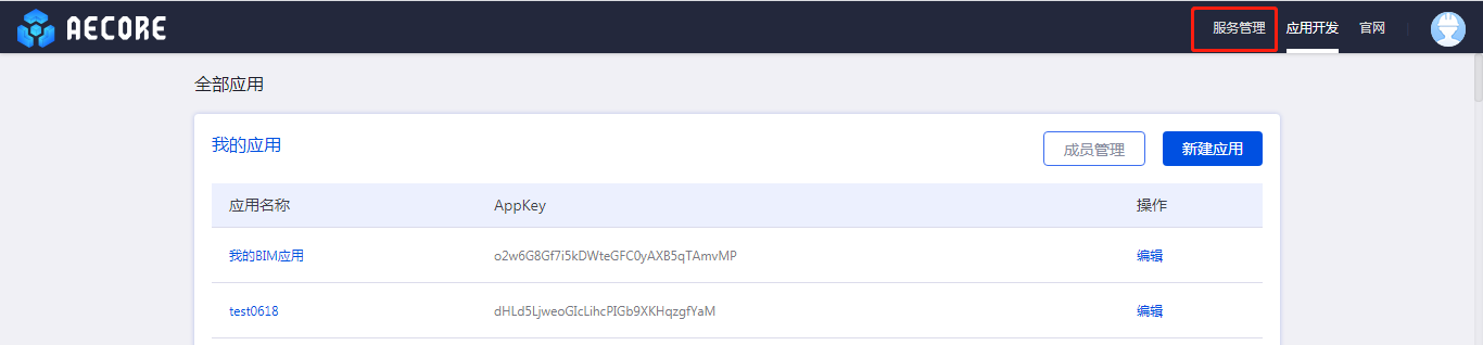 前提:该服务已在AECORE上发布(服务发布联系:刘卓liuz-l@xghf.cn)