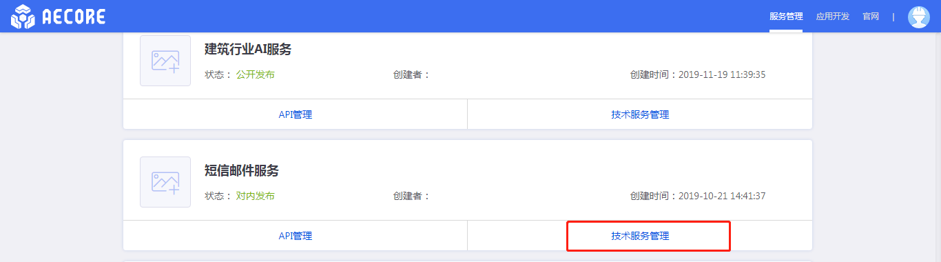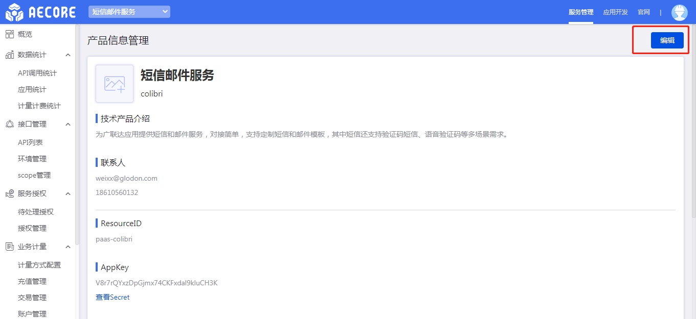 登录到AECORE,进入到服务管理,选择你的服务,技术服务管理—产品信息管理