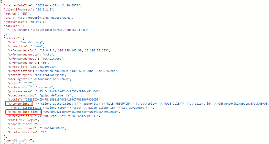 因为ISV是带着OAuth2 token通过AECORE网关apigate.xghf.cn来调用SP服务的,所以,AECORE能够从token中识别出来ISV的身份,将识别出来的身份信息放入到http header "x-token-info"中发向SP服务。