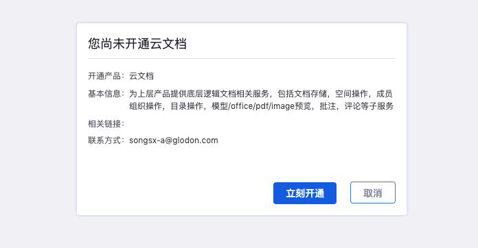 应用创建后选择云文档并开通本服务,申请应用scope