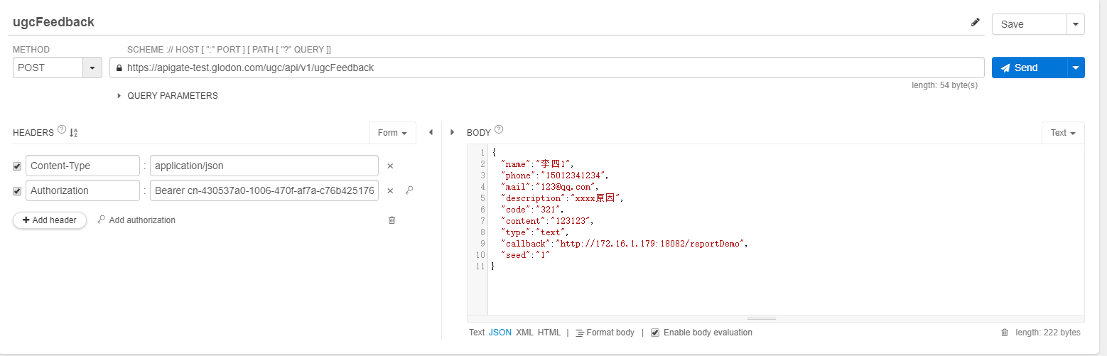 POST http://apigate.xghf.cn/ugc/api/v1/ugcFeedback