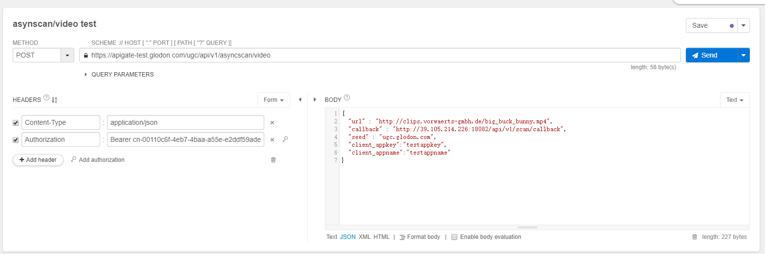 POST http://apigate.xghf.cn/ugc/api/v1/asyncscan/video