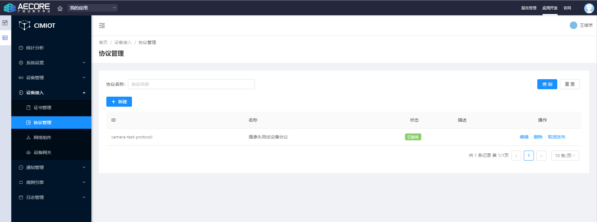 在左侧导航栏,选择【设备接入 --协议管理】,如下图:
