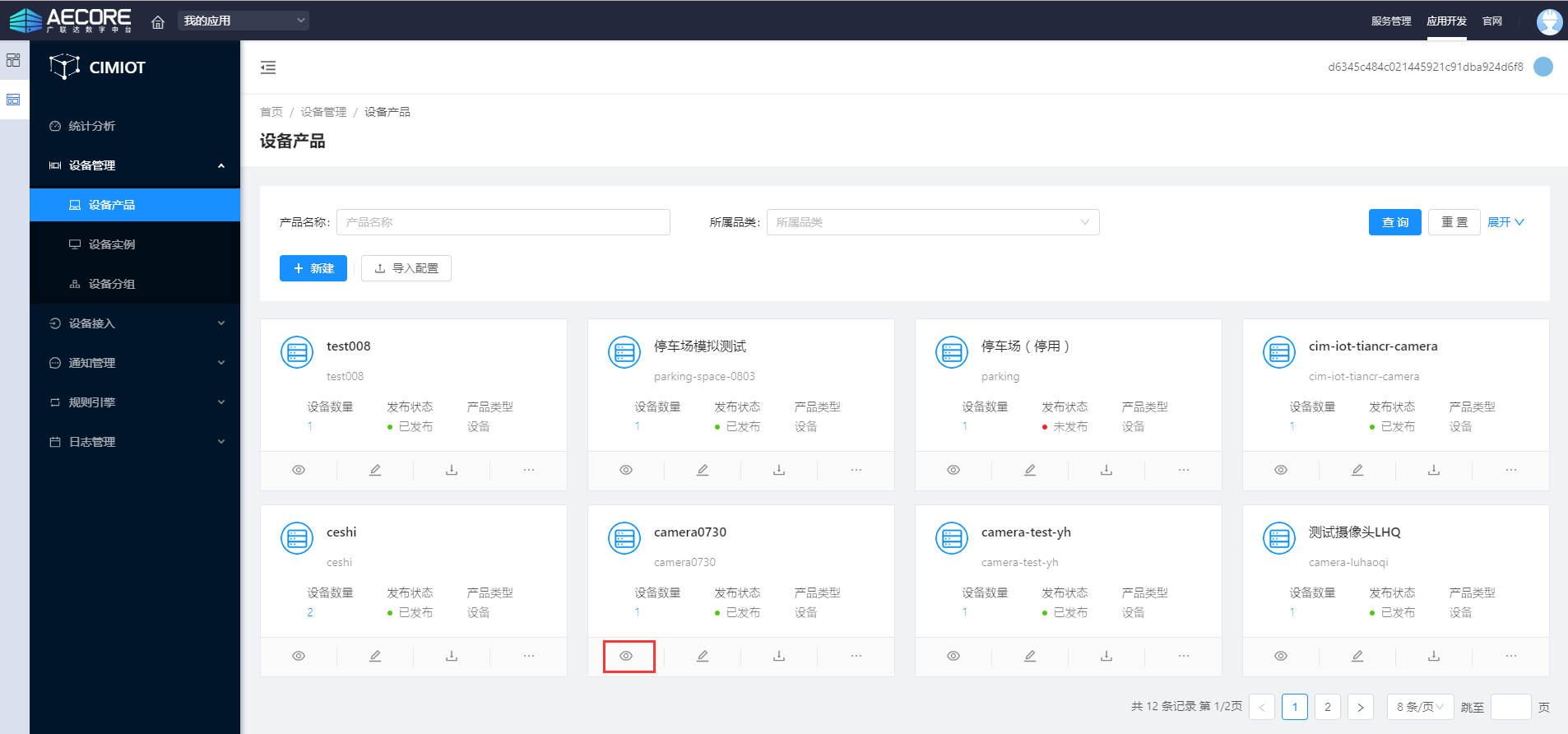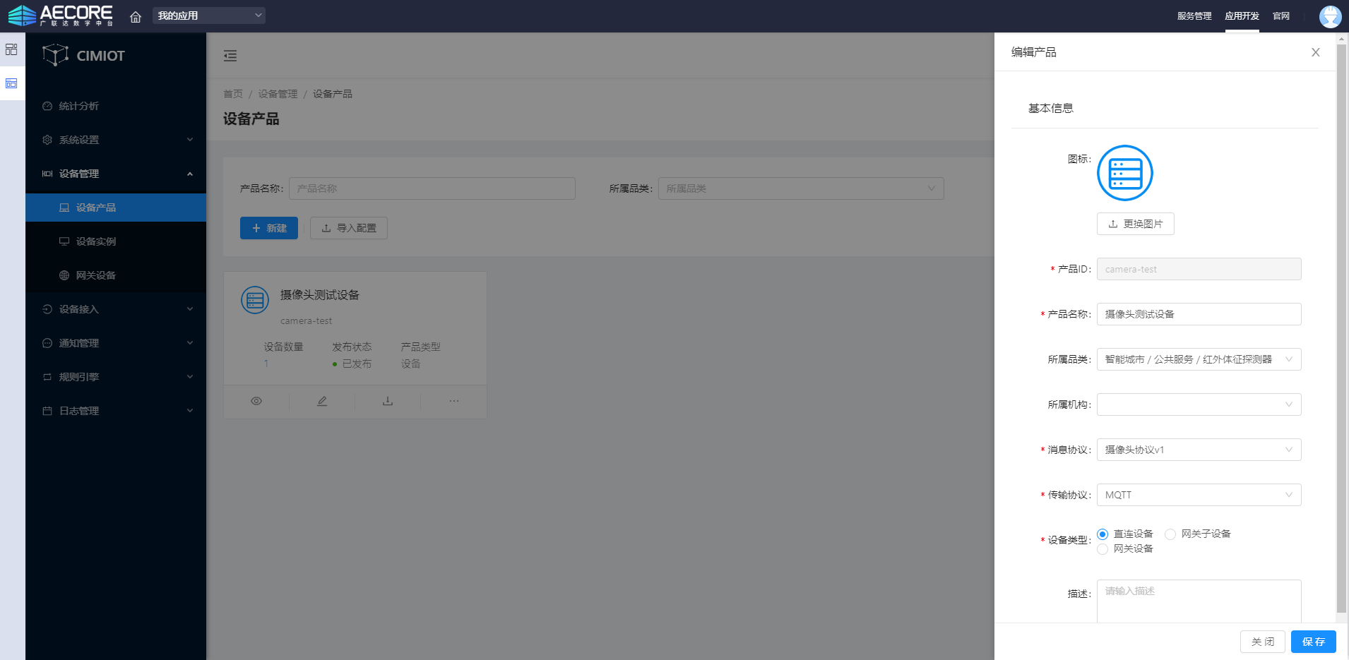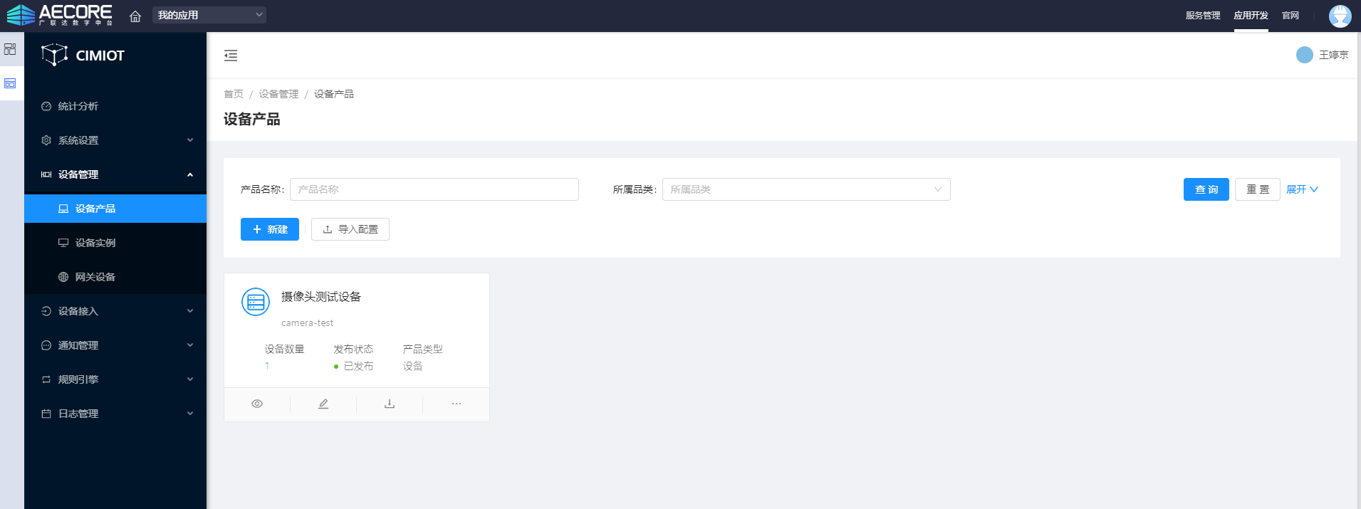 在左侧导航栏,选择【设备管理 --设备产品】,如下图: