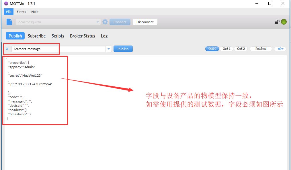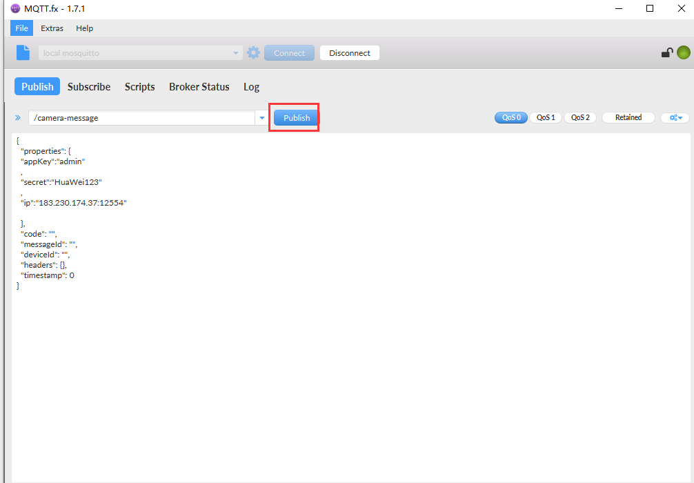 点击【publish】,数据发送成功,如下图: