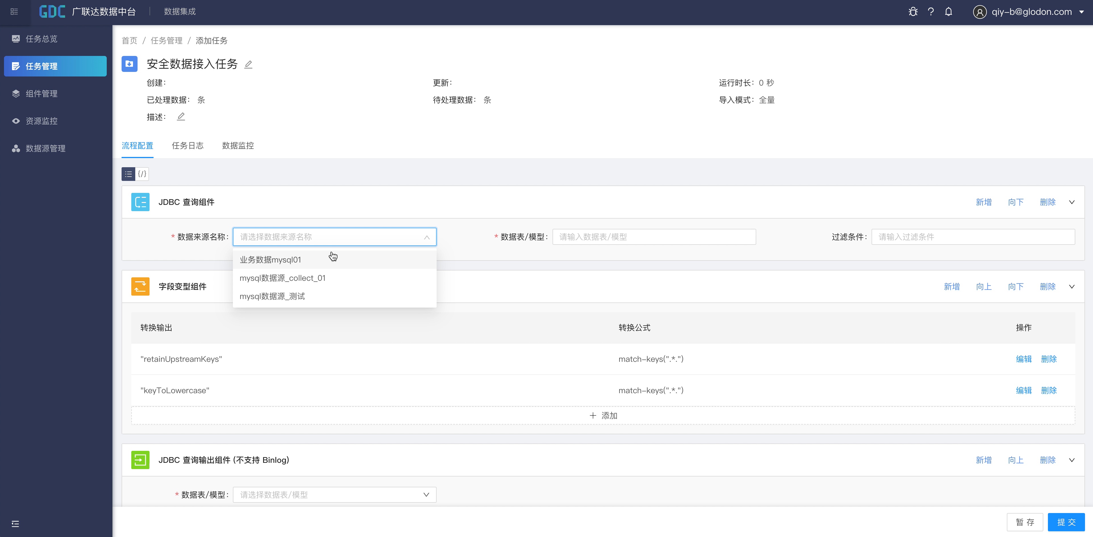 - 实时和离线的数据加工处理:支持SQL脚本对数据中台的数据进行实时或离线的加工处理。