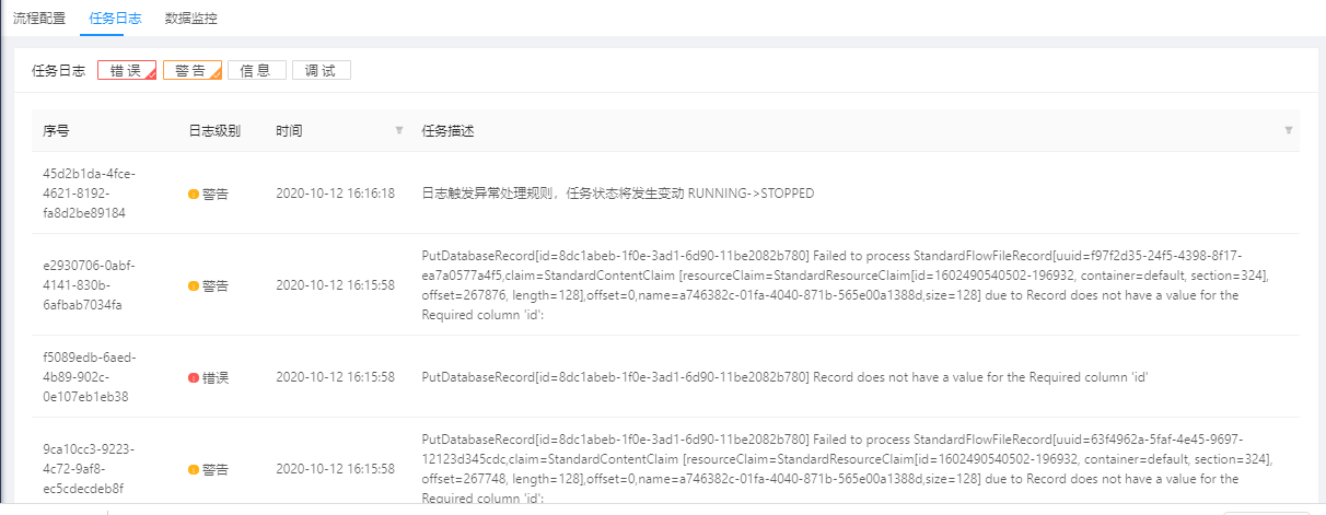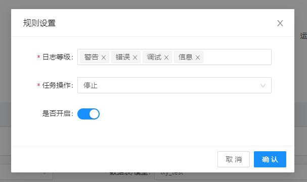 任务规则设置功能支持用户为任务配置自动停止或者暂停的规则。目前支持选择日志内容中需要处理的日志等级,并设置需要进行操作的任务。